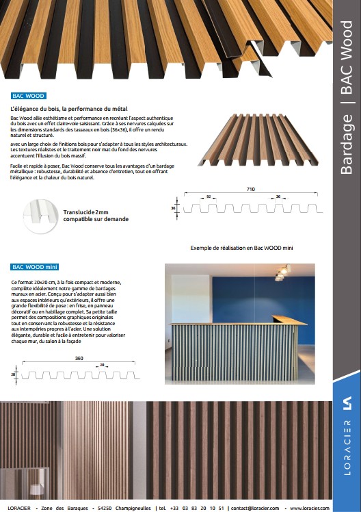 Pensés pour l’architecture contemporaine, les bacs de bardage architecturaux Loracier offrent des finitions haut de gamme pour les façades visibles et les projets esthétiques exigeants.